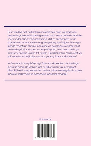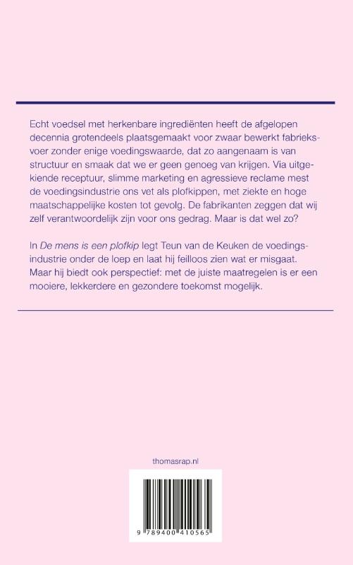 In De mens is een plofkip legt Teun van de Keuken de voedingsindustrie onder de loep en laat hij feilloos zien wat er misgaat. Maar hij biedt ook perspectief: met de juiste maatregelen is er een mooiere, lekkerdere en gezondere toekomst mogelijk.