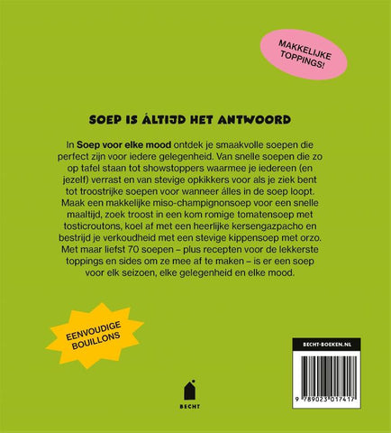Soep is het beste medicijn voor een rommelende maag én het antwoord op al je problemen. Is je hart gebroken? Zit je niet lekker in je vel? Wil je je gasten imponeren? In 'Soep voor elke mood' vind je de allerlekkerste soepen voor elke denkbare situatie. Denk aan een makkelijke miso-paddenstoelensoep voor wanneer je erdoorheen zit, of een groene gazpacho waarmee je heerlijk kunt afkoelen op warme dagen. Uiteraard vind je ook een heerlijke kippensoep met orzo of een warme kom congee voor de dagen dat je in bed ligt met een stevige verkoudheid.