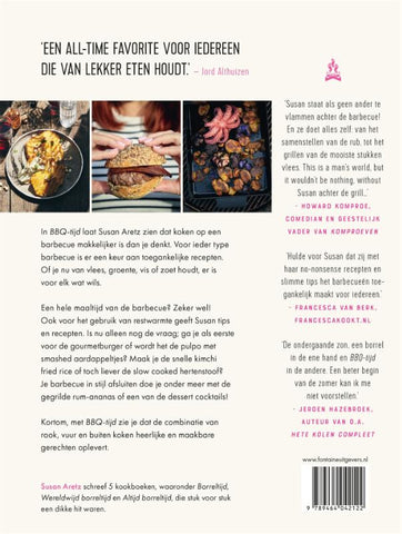 'Dat we af willen van de stereotype 'man-achter-de-barbecue' is wel duidelijk, en laat culinair alleskunner Susan Aretz nu precies het kookboek uitbrengen dat je daarbij kunt gebruiken!' - delicious