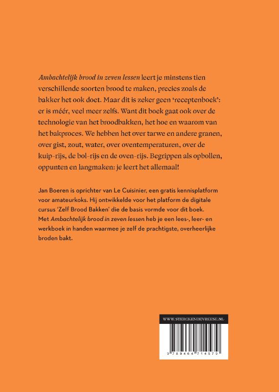 Ambachtelijk brood in zeven lessen leert je minstens tien verschillende soorten brood te maken, precies zoals de bakker het ook doet. Maar dit is zeker geen ‘receptenboek’: er is méér, veel meer zelfs. Want dit boek gaat ook over de technologie van het broodbakken, het hoe en waarom van het bakproces. We hebben het over tarwe en andere granen, over gist, zout, water, over oventemperaturen, over de kuip-rijs, de bol-rijs en de oven-rijs. Begrippen als opbollen, oppunten en langmaken: je leert het allemaal!