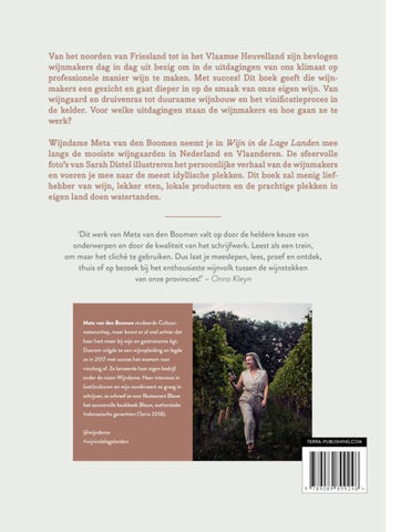 Wijndame Meta van den Boomen neemt je in Wijn in de Lage Landen mee langs de mooiste wijngaarden in Nederland en Vlaanderen. De sfeervolle foto's van Sarah Distel illustreren het persoonlijke verhaal van de wijnmakers en voeren je mee naar de meest idyllische plekken. Dit boek zal menig liefhebber van wijn, lekker eten, lokale producten en de prachtige plekken in eigen land doen watertanden.