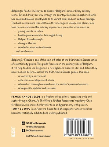In this guide she shares the places every foodie should visit in Belgium, from amazing food shops to extraordinary dining locations, and from top restaurants to simple local specialties. Discover lists such as: vineyards that are worth the trip, the best Japanese restaurants, restaurants where chefs eat, the best places for liege-style meat balls, and much more.