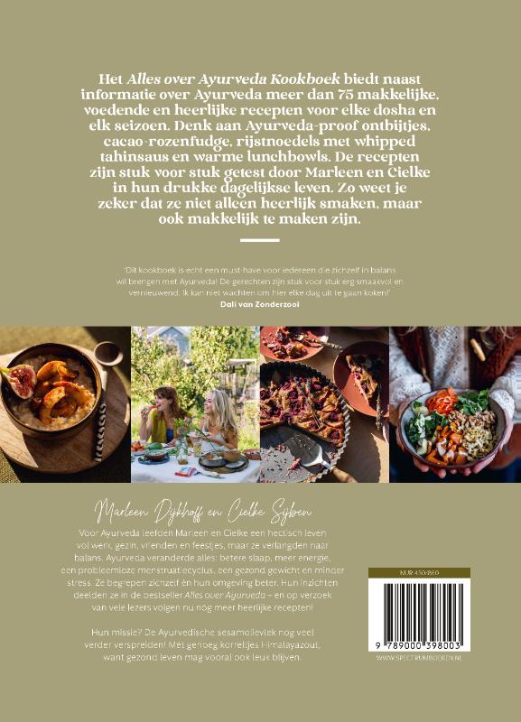 Marleen Dijkhoff en Cielke Sijben hadden een hectisch leven met een carrière, gezin, vrienden en feestjes, maar verlangden naar meer balans, zowel lichamelijk als mentaal. Ayurveda kwam op hun pad en dit veranderde hun leven totaal. Slaapproblemen verdwenen, ze kregen een gezond gewicht (dag opgeblazen buik!), hadden meer energie, minder stress en een probleemloze menstruatiecyclus. Ze leerden zichzelf én hun omgeving beter begrijpen. Hun ervaringen deelden ze in de bestseller Alles over Ayurveda, waarin al een aantal recepten stonden, maar lezers bleven vragen om meer inspiratie voor heerlijke Ayurvedische gerechten.