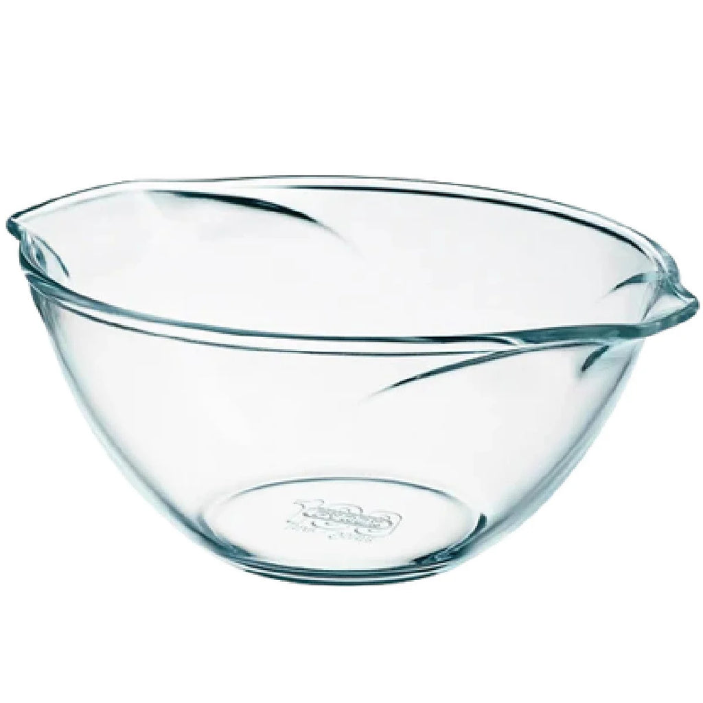 De Pyrex Beslagkom Glas Vintage 2,8L (28x23x11cm) is een beslagkom gemaakt van glas en heeft een handvat en een schenktuit. Perfect om je beslagen en degen in te mixen, maar ook voor andere toepassingen. Door het borosilicaatglas is de kom namelijk ook te gebruiken in de oven, magnetron, vriezer en vaatwasser. Dus ook ideaal om bijvoorbeeld te gebruiken voor het maken van desserts.