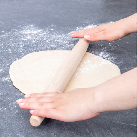 Extra lange houten deegroller met een lengte van 45,5 cm. Het voordeel van deze rolstok is dat deze taps toe loopt. Handig bij het uitrollen van pizza- en pastadeeg.