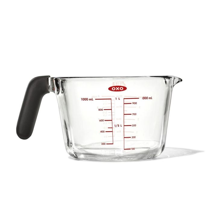 Deze glazen maatkan van OXO is perfect voor het afmeten, schenken, bewaren, verwarmen en opwarmen van vloeistoffen. De maatkan is voorzien van vetgedrukte, gemakkelijk af te lezen maataanduidingen. Dankzij het schokbestendig borosilicaatglas, zet je de maatkan vanuit de koelkast of vriezer direct in de oven of magnetron zonder bang te hoeven zijn dat hij barst. Dat betekent dat je hem kunt gebruiken om pastawater te bewaren, boter of kokosolie op te warmen of een restje bouillon of soep opnieuw op te warmen. Het siliconen antisliphandvat voegt een extra laag comfort en controle toe omdat het goed in de hand blijft liggen, zelfs als het nat wordt. Geschikt voor magnetron, koelkast, vriezer en vaatwasser.
