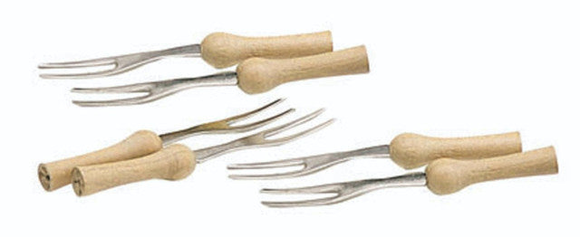 Maïskolf: heerlijk, maar lastig om te eten. Het is heerlijk besmeerd met boter, maar glijdt uit je handen als een geolied ijsblokje. En succes met het vastpakken als het onder de grill heeft gelegen - heet, heet, heet! Wanhoop niet - KitchenCraft heeft precies wat je nodig hebt om maïskolven praktischer te eten! Duw deze suikermaïshouders in elk uiteinde van je maïskolf en je kunt er helemaal zonder rotzooi van genieten. Elk van de vorkvormige houders heeft twee roestvrijstalen tanden, die scherp genoeg zijn om de hardste kolven gemakkelijk te doorboren. Ze zijn ook voorzien van extra lange houten handvatten zodat je de met boter doordrenkte kolf gemakkelijk kunt optillen zonder hem te laten vallen.