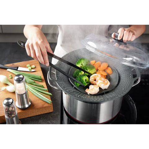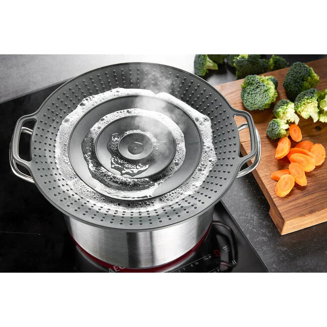 Hierdoor blijft de pan maar natuurlijk ook het fornuis schoon. Je kunt het ook gebruiken om bijvoorbeeld groente of vis te stomen.
