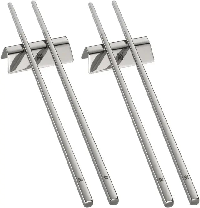 De set eetstokjes uit de Nuova collectie van WMF combineert elegantie met functionaliteit en duurzaamheid. Deze milieuvriendelijke eetstokjes zijn ontworpen met matte uiteinden waardoor ze perfect zijn om noedels en rijst moeiteloos op te pakken. Gemaakt van hoogwaardig Cromargan® 18/10 roestvrij staal, zijn de eetstokjes slijtvast en volledig vaatwasmachinebestendig, wat bijdraagt aan hun langdurige gebruiksgemak. De geometrische, ergonomische vorm zorgt ervoor dat ze comfortabel in de hand liggen, ideaal voor zowel beginnende als ervaren gebruikers van eetstokjes. De set bestaat uit twee paar eetstokjes en bijpassende houders. Bovendien worden ze geleverd in een luxe geschenkverpakking, wat deze set een bijzonder cadeau maakt.