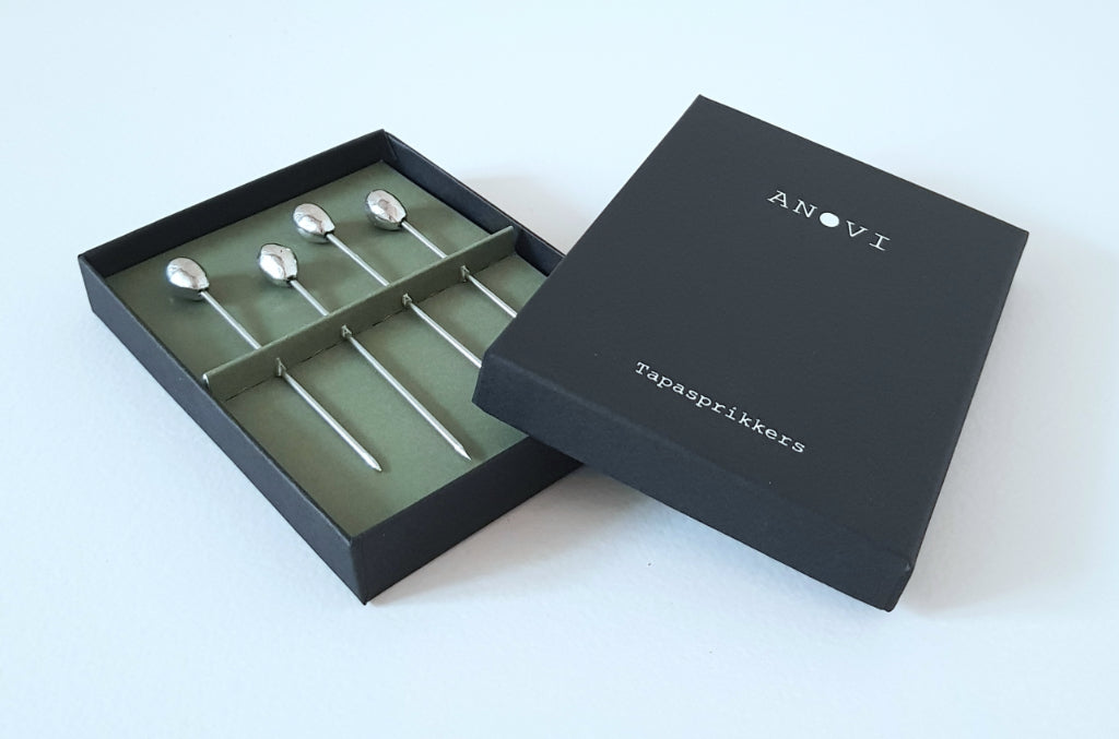 De tapasprikkers zijn een zuiver tinnen product en worden ambachtelijk vervaardigd in Nederland.