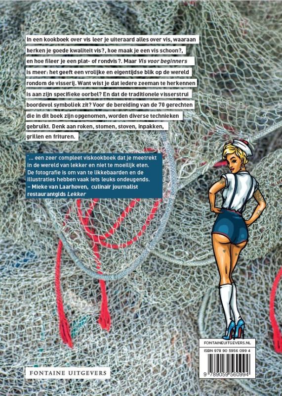 In een kookboek over vis leer je uiteraard alles over vis: waaraan herken je goede kwaliteit vis?, hoe maak je een vis schoon?, en hoe fileer je een plat- of rondvis? Maar Vis voor beginners is meer: het geeft een vrolijke en eigentijdse blik op de wereld van de visserij. Wist je dat iedere zeeman te herkennen is aan zijn specifieke oorbel? En dat de traditionele visserstrui boordevol symboliek zit? Voor de bereiding van de 70 gerechten die in dit boek zijn opgenomen, worden diverse technieken gebruikt. Denk aan roken, stomen, stoven, inpakken, grillen en frituren. De styling van Mirjam van der Rijst, de fotografie van Harold Pereira en de vormgeving van Martien Holtzappel zorgen voor een fantastisch, verrassend en inspirerend visboek.
