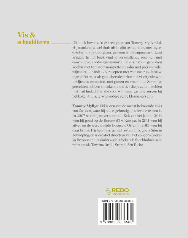 Dit boek bevat zo'n 80 recepten van Tommy Myllymäki. Hij maakt ze zowel thuis als in zijn restaurants, met ingrediënten die je doorgaans gewoon in de supermarkt kunt krijgen. In het boek vind je verschillende recepten met eenvoudige, alledaagse vissoorten, zoals in room gebakken koolvis met tomatenvinaigrette en zalm met prei en rodewijnsaus. Je vindt ook recepten met wat meer exclusieve ingrediënten, zoals gepocheerde tarbot met viseitjes in wittewijnsaus en oesters met ponzu en sesamolie. Sommige gerechten hebben smaakcombinaties die je zelf misschien niet had bedacht en die voor wat meer variatie zorgen bij het koken thuis, terwijl andere echte klassiekers zijn.
