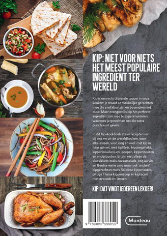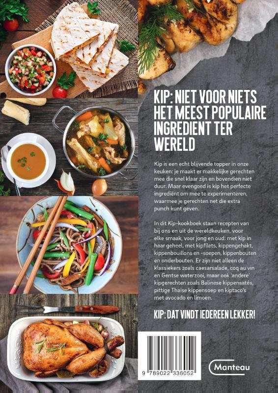 In dit Kip-kookboek staan recepten van bij ons en uit de wereldkeuken, voor elke smaak, voor jong en oud: met kip in haar geheel, met kipfilets, kippengehakt, kippenbouillons en -soepen, kippenbouten en onderbouten. Er zijn niet alleen de klassiekers zoals caesarsalade, coq au vin en Gentse waterzooi, maar ook 'andere' kipgerechten zoals Balinese kippensatés, pittige Thaise kippensoep en kiptaco's met avocado en limoen. Kip: dat vindt iedereen lekker!