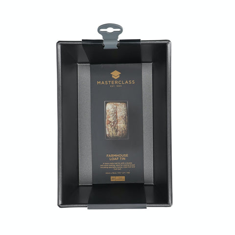Er gaat niets boven het aroma van een vers gebakken brood. Of je nu elke dag brood bakt of voor het eerst brood bakt, met deze broodvorm zit je helemaal goed. Dit is allemaal te danken aan de dikke koolstofstalen kern afgewerkt met twee lagen ultramoderne siliconen antiaanbaklaag. De MasterClass Non-Stick Box-Sided 4 lb Loaf Tin meet 25 x 16 cm (10" x 6¼") en is 12 cm (4¾") diep. Hij is niet alleen geweldig voor het bakken van grote, knapperige broden, maar is door zijn veelzijdige ontwerp ook perfect voor traditionele fruit- en vleesbroden.