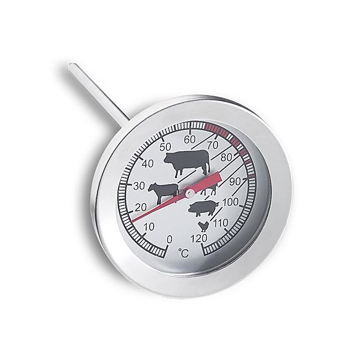 Met deze vleesthermometer van Kitchen Basics meet je de kerntemperatuur van vlees, gevogelte en meer. Zo weet je zeker dat je gerecht ook binnenin, dus in de kern, gaar is. De thermometer is goed leesbaar, het display toont bovendien adviestemperaturen voor verschillende soorten vlees.  Een beschermhoesje met clip is inclusief. De thermometer meet tot 120°C en is gemaakt van roestvrij staal.